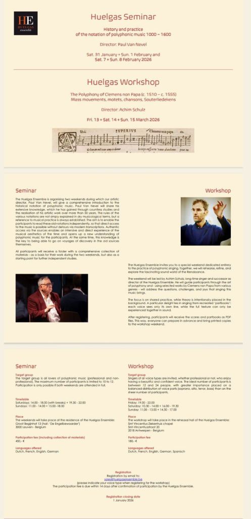 The audition will last around 30 minutes and will focus on the declamation of texts and the general ability to sing early music. No special preparation is required and you do not need to prepare a presentation.